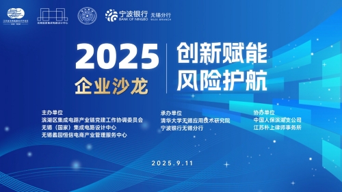 2025年9月11日,“2025创新赋能与风险护航企业沙龙”在清华大学无锡应用技术研究院(以下简称“清华无锡研究院”)成功举办。本次活动由滨湖区集成电路产业链党建工作协调委员会、无锡(国家)集成电路设计中心、无锡蠡园恒信电商产业管理服务中心共同主办,清华无锡研究院与宁波银行无锡分行联合承办,中国人保滨湖支公司、江苏朴上律师事务所协办支持。活动吸引了近30家来自集成电路、国际贸易等领域的科技型企业代表参与,与会成员围绕企业在全球化背景下如何借助金融工具、风险管理和知识产权保护实现可持续成长等议题展开深入交流。